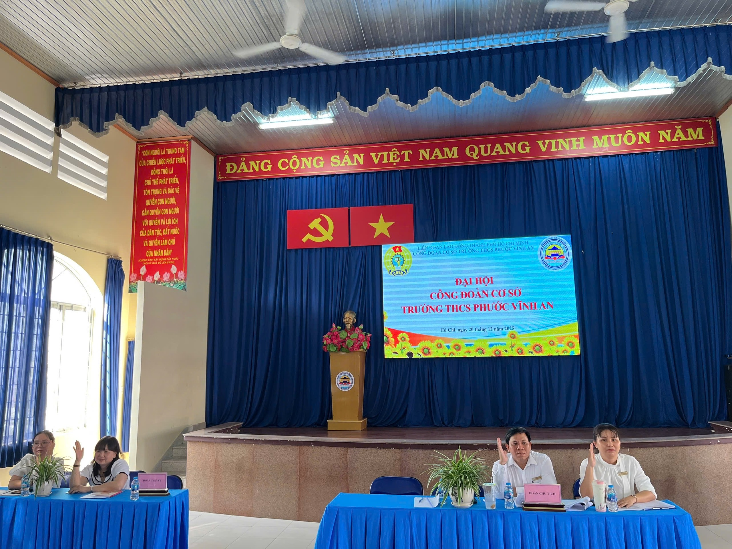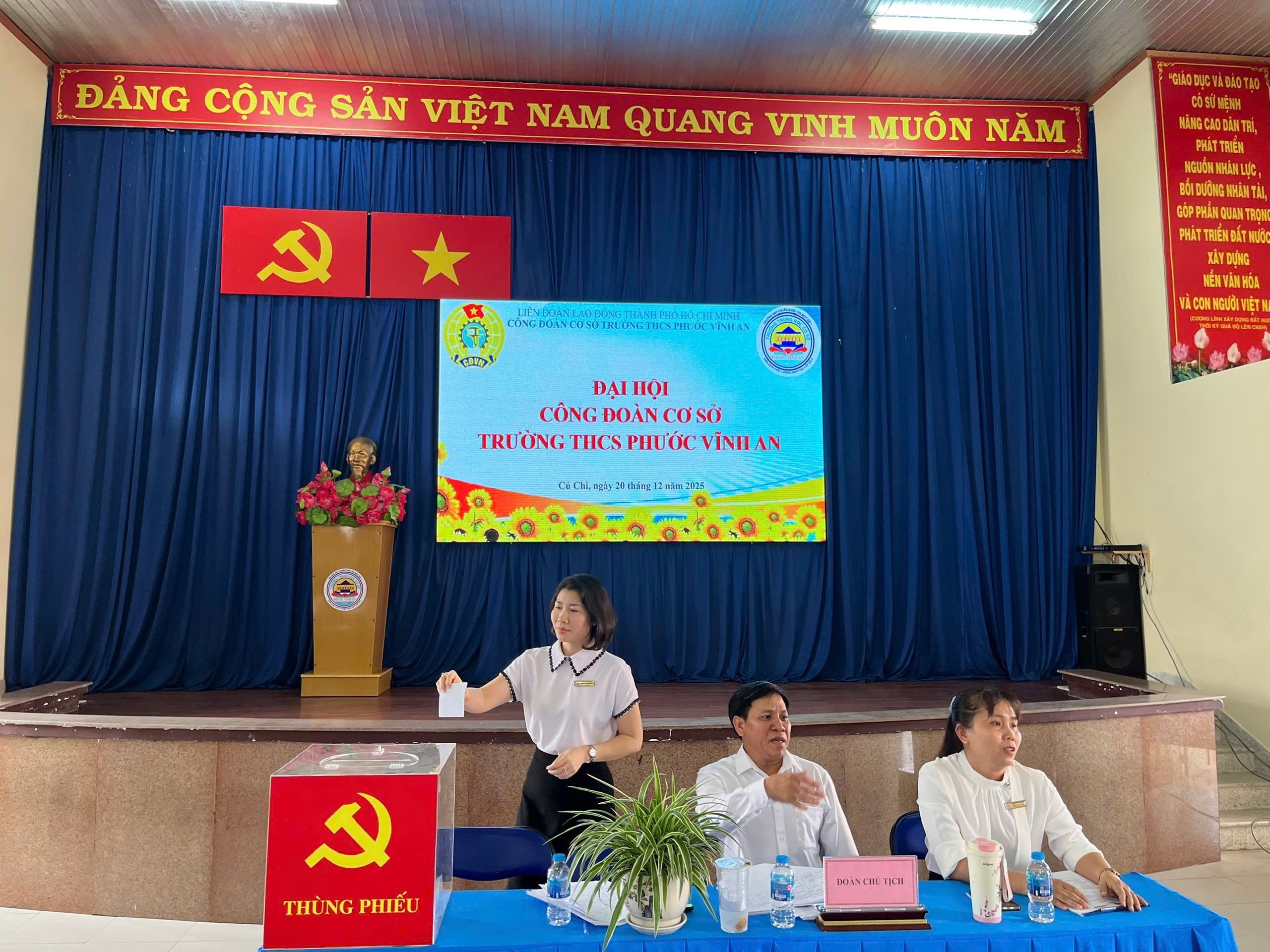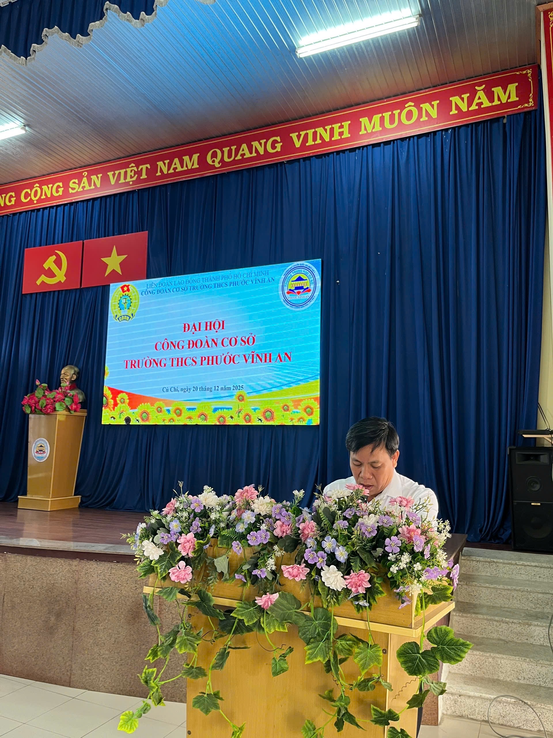 Được sự đồng ý của Ban Thường vụ Liên đoàn Lao động Thành phố Hồ Chí Minh sáng ngày 20/12/2025 Công đoàn cơ sờ trường THCS Phước Vĩnh An long trọng tổ chức Đại hội Công đoàn, nhiệm kỳ 2025-203.